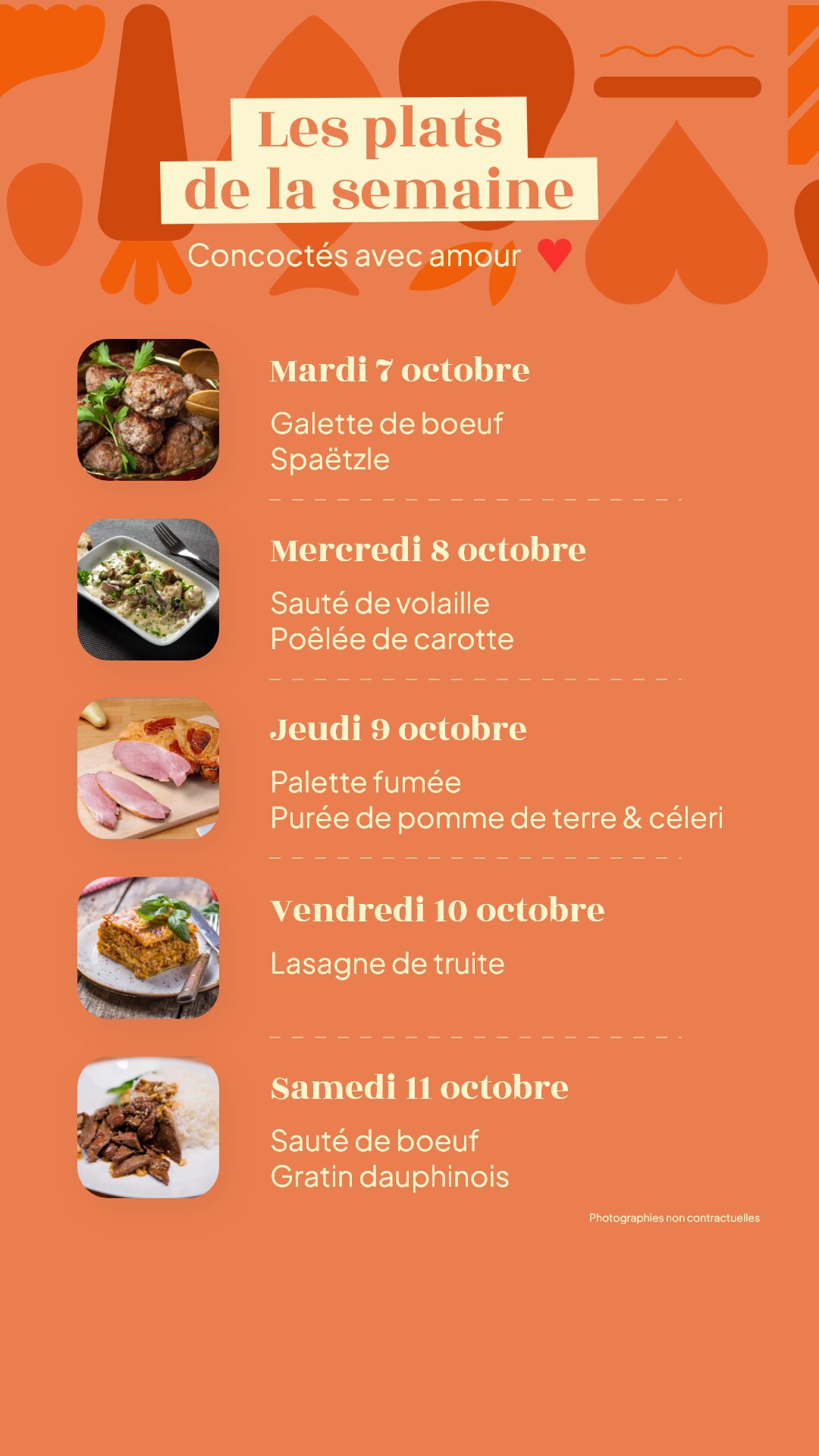 Menu du mardi 7 au samedi 11 octobre