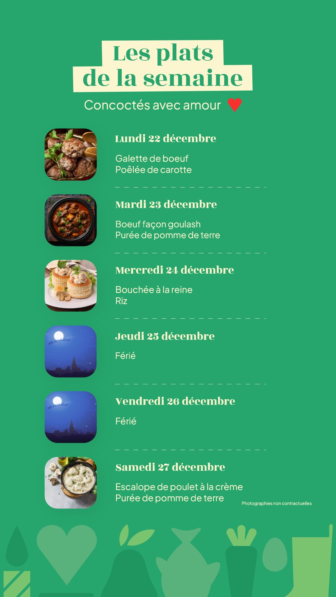 Menu du lundi 22 au samedi 27 décembre